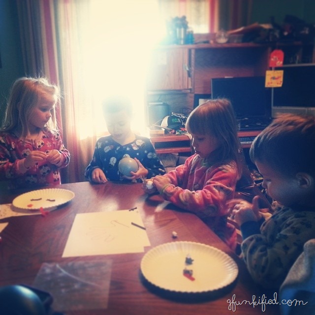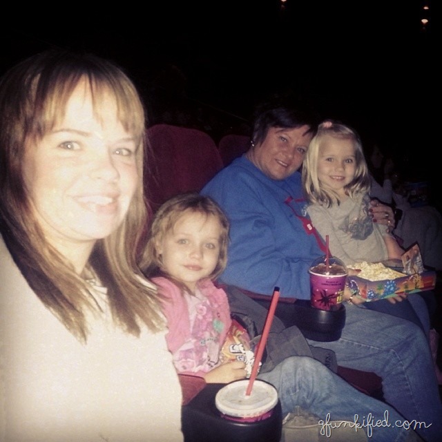 Thanksgiving! We hosted hubs’ parents at our house. Grandma brought a snowman kit (Thanks, Jeanne!) that the kids played with all day long (it’s basically silly putty with little pieces to stick in it, and it “melts.” Then the girls, their grandma, and I went to see Frozen. Such a cute movie. (And obviously, I had the flash on and close to me. Eek.)