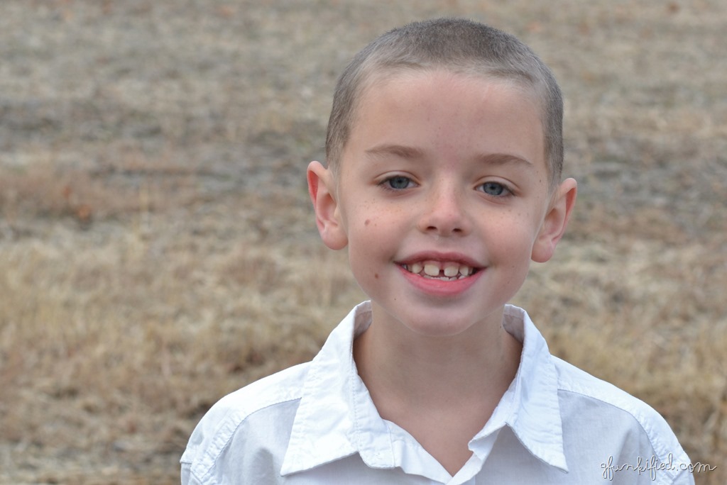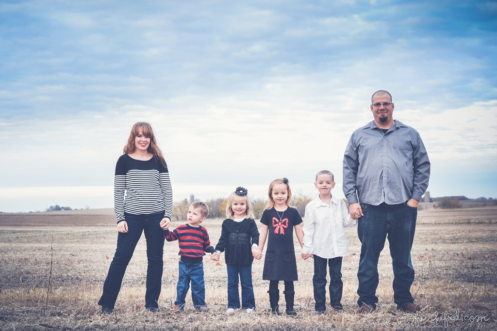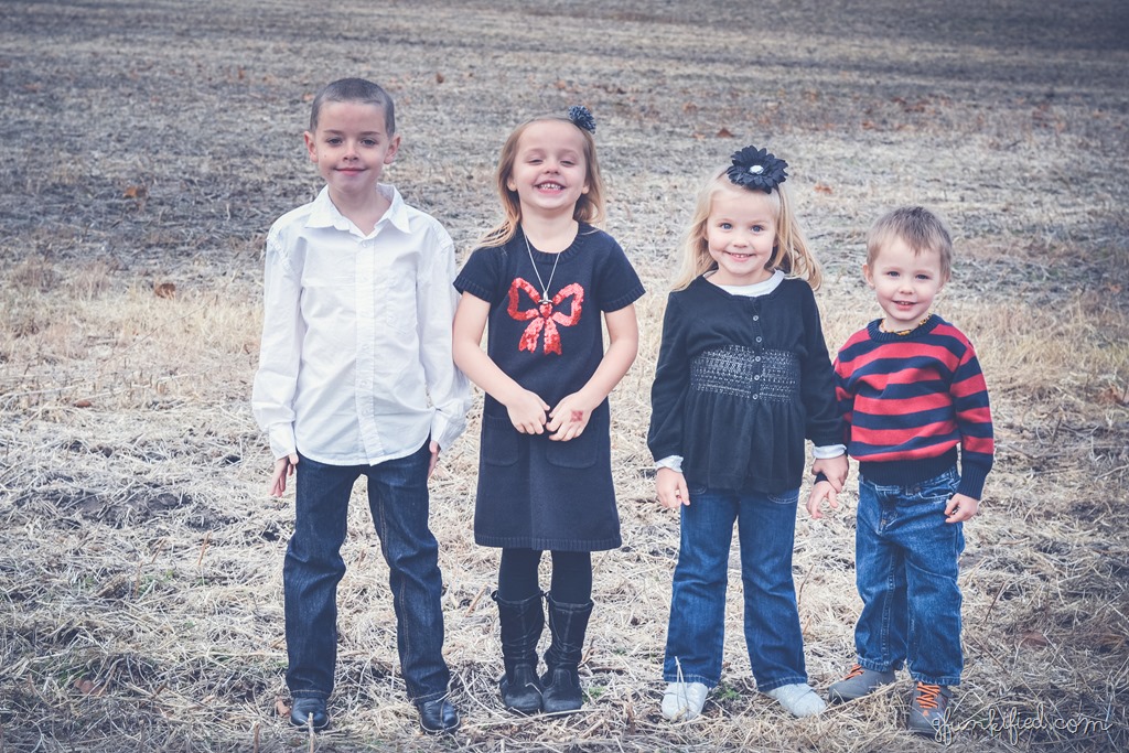 So, on a Sunday afternoon a few weeks ago, in a comical display of stubbornness, I set up my camera on a big cardboard box from the garage, and we all stood out in the field behind our house while I ran back and forth to hit the button and get back in place before the time was up. I was “allowed” to take five pictures of all of us, by my husband, who insisted that after five, he’d no longer have a smile for the camera. I took six. I don’t think they’re half bad.
