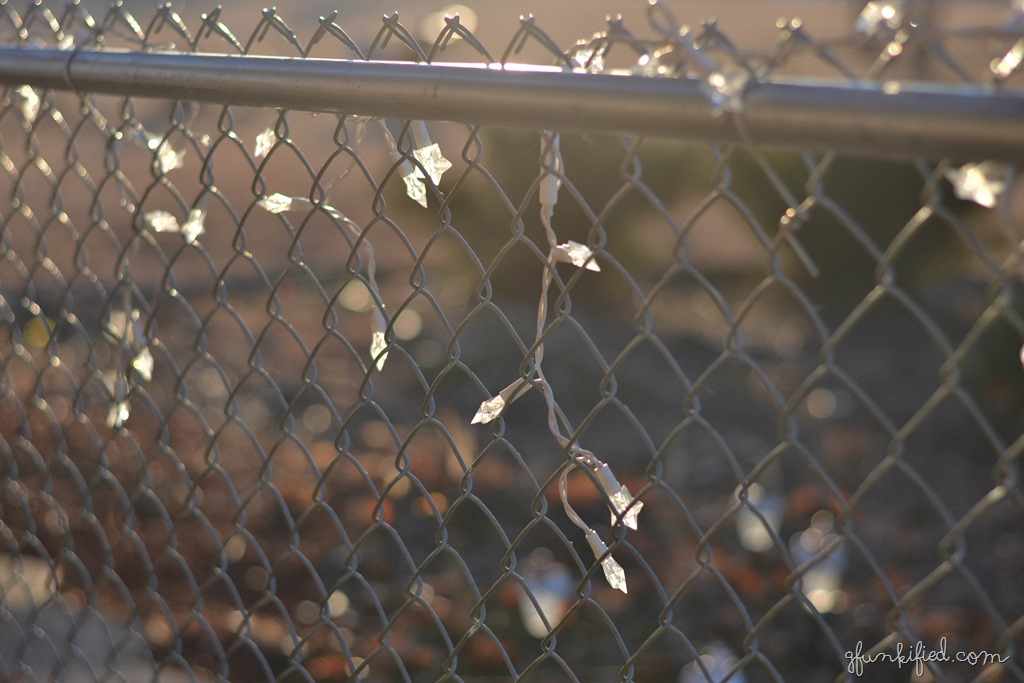 I’m loving the early morning light, and tried to focus on the white LED bulbs. You can also see more of the lights in the garden behind the fence.