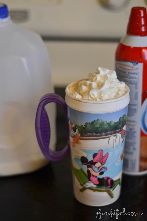 And this is my leftover addiction from our Christmas travels. My MIL had Redi Whip in her fridge, and I put some in my coffee. Now, I can’t seem to have it any other way (although, I still can’t get it to taste quite as good as I did at her house). I’m also still daydreaming about the relaxing I did in Florida last week, and have been using my souvenir mug from the resort all day every day.