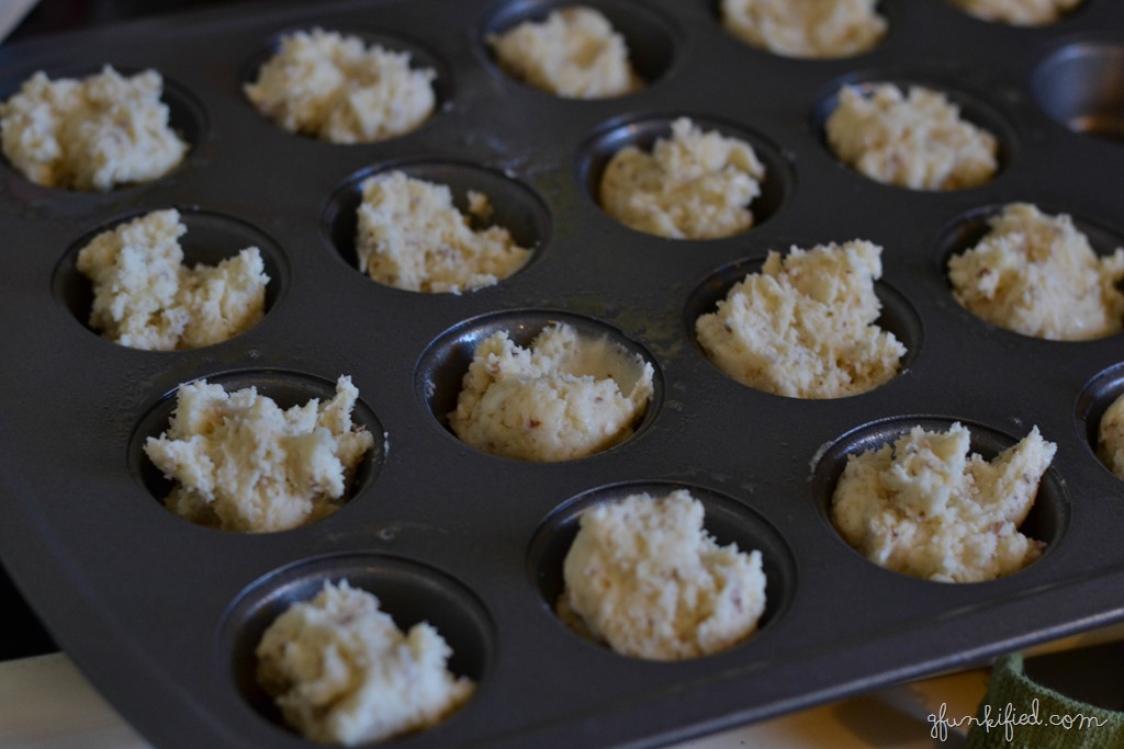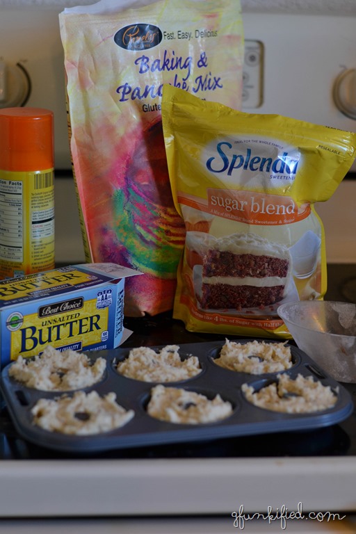 Note: next time I make these (which will be very, VERY soon) I’ll add an egg to the batter. As delicious as they are, they could stand to stick together a little better. Although, then I wouldn’t be able to sneak spoonfuls of it while I’m filling the pans….
