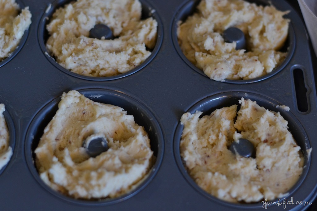 I used a donut pan first, and ended up filling up a mini muffin pan with the leftover batter when I became impatient and decided that I didn’t want to do three (or more) separate batches with my one donut pan.