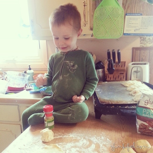 My husband is really good about making carb-filled meals that I request on the weekends, after I do a long run and can eat whatever I want (or you know, that’s what I tell myself). This time, he and Erv made gluten free bierocks. (I was going to link to the recipe, but I’m not sure which one he uses) UPDATE: he sent me the recipe.