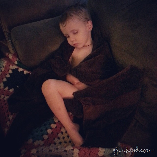 Little potty trainer had a long day. Took a bath then slept right through supper. And woke up early in the morning.