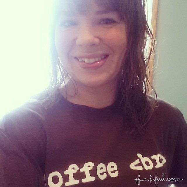 Wearing my awesome new Coffee Break shirt from bloggingconcentrated.com (and getting ready for a LTYM reunion lunch).