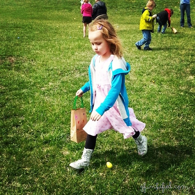 Local Easter egg hunt…the kids needed lessons in assertiveness (of course, by the time they got them, the eggs were all gone).