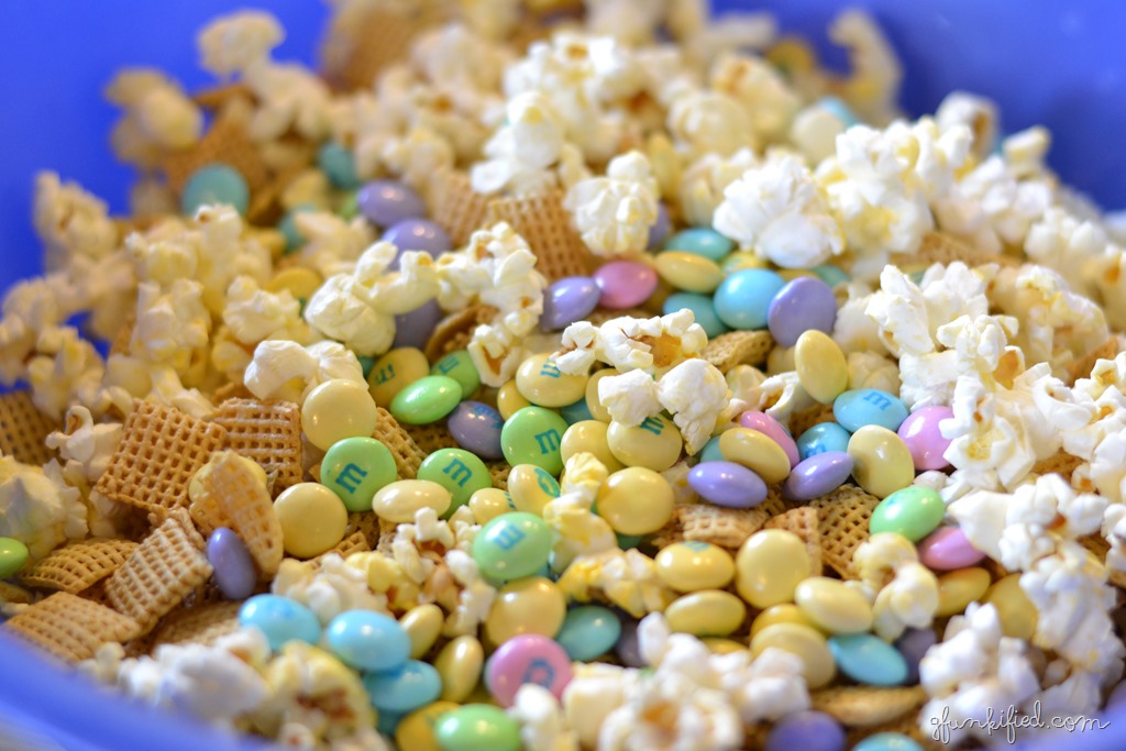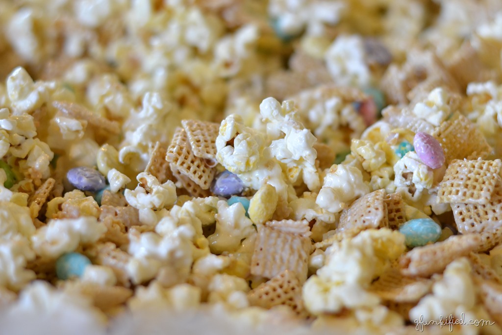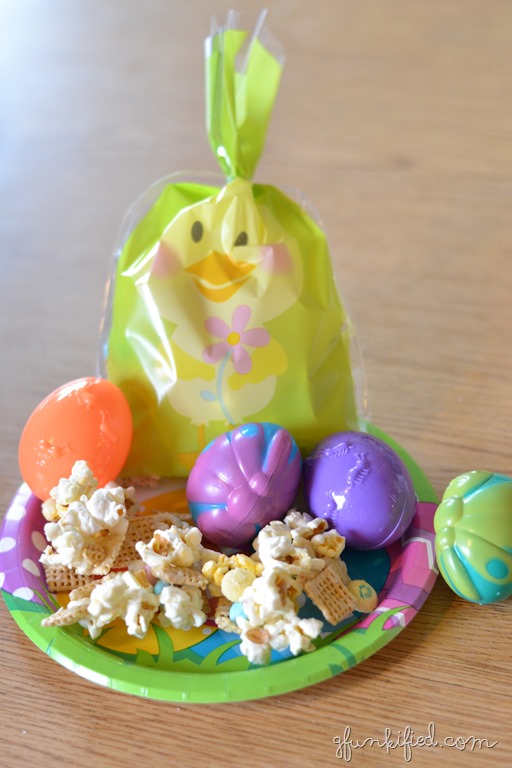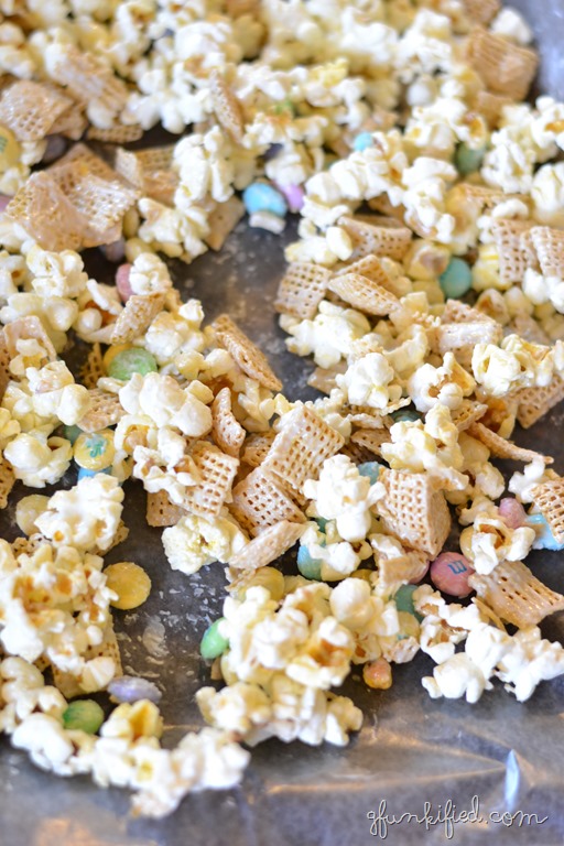 I made some gluten free popcorn party mix for the girls’ Easter parties at school tomorrow. (It’s super easy, but if you want the recipe, check it out on Today’s Work At Home Mom…and feel free to take a look around while you’re there).