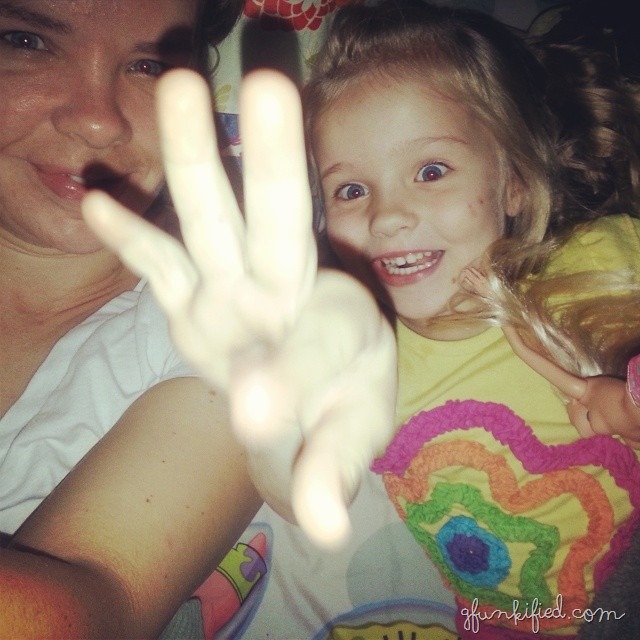And because the big three share a room (by choice and also because of space issues), Essie has a hard time sleeping alone. So, slumber party in her bed.
