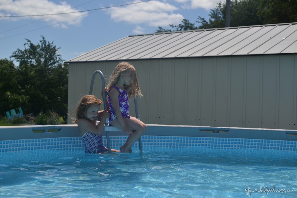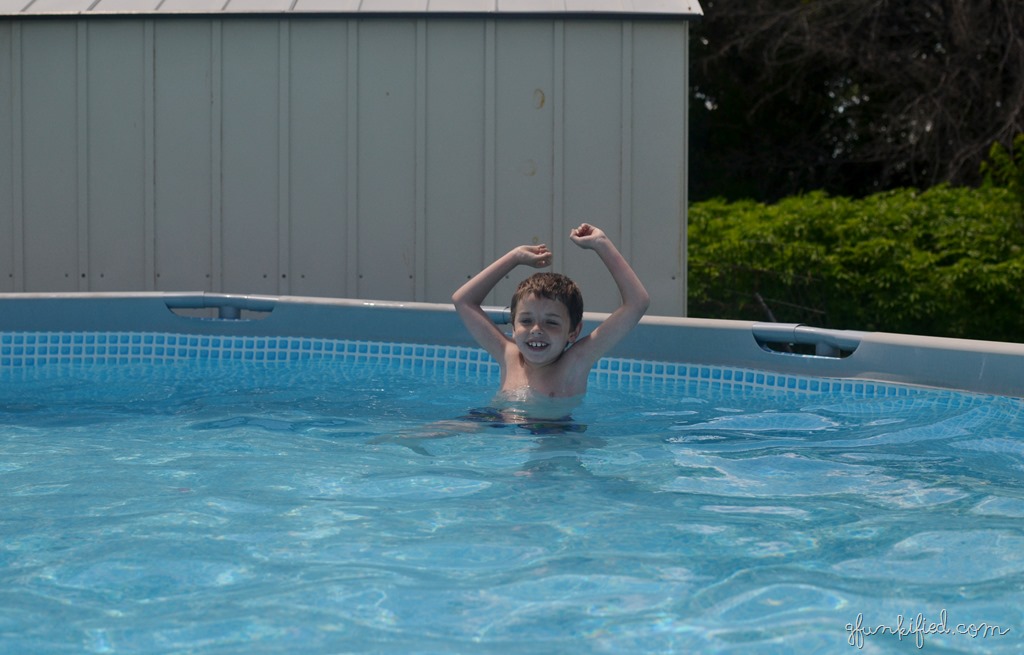 The big three did go swimming for a little while. Erv and I jumped on the trampoline because the water was FREEZING.