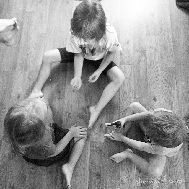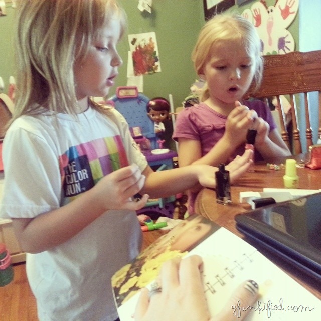 The girls found a book about nail art at the library and we had to try some designs. The problem is that their tiny fingernails don’t make very good canvases.