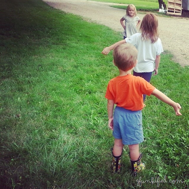 This is a game Ervin made up called “house in a while.” You stand somewhere with your arm out until the person that is It comes and touches your hand. Then you move to a new spot and do it again. It’s pretty rad and he was pretty excited that the girls and I were willing to play with him. “Y’anna pway house in a while?” How could you resist?