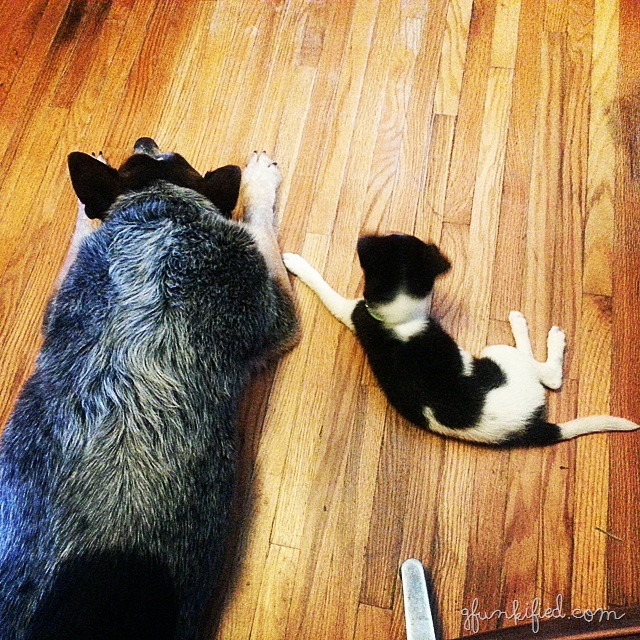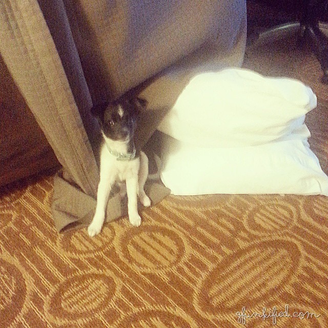 Bitty baby did SO well in the hotel last weekend. No accidents or anything. (We took her with since she’s only two months old and small enough to do so). Of course, as soon as we got home, it was an adjustment period back to being good…