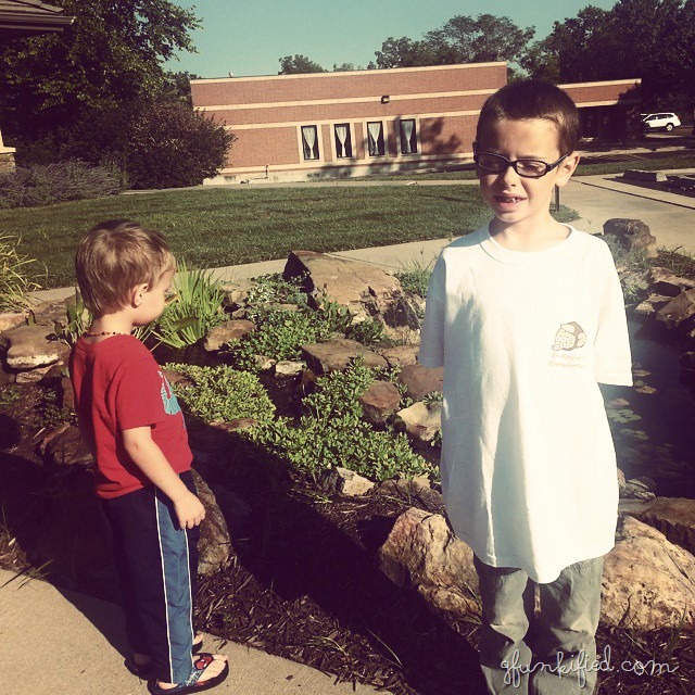 Picture day picture, in the school parking lot, because I almost forgot. Aren’t they cute??