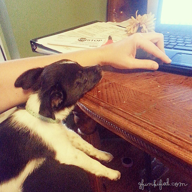 I was doing work on the computer and Louise wanted to sit with me. And then she fell asleep like this. Isn’t SHE cute??