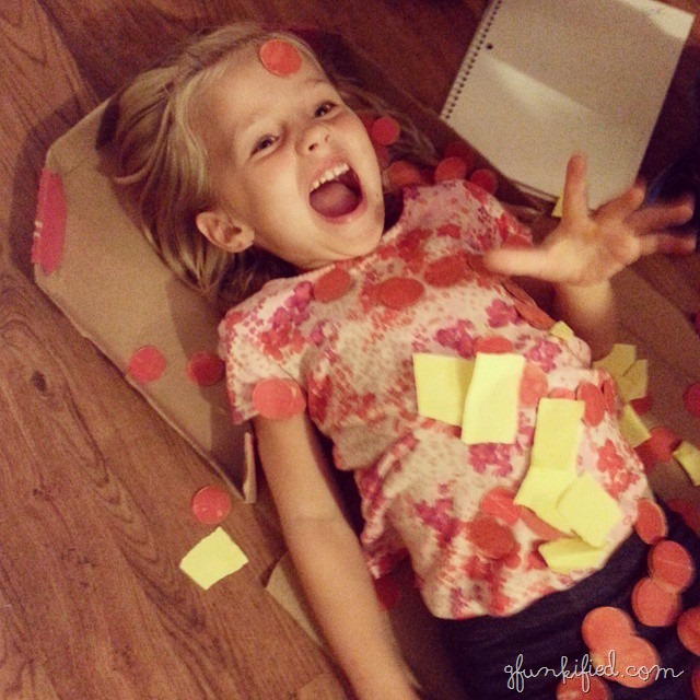 And the kindergartners act out the Pete’s a Pizza book at home…it was Essie’s turn this week. Again, so cute.