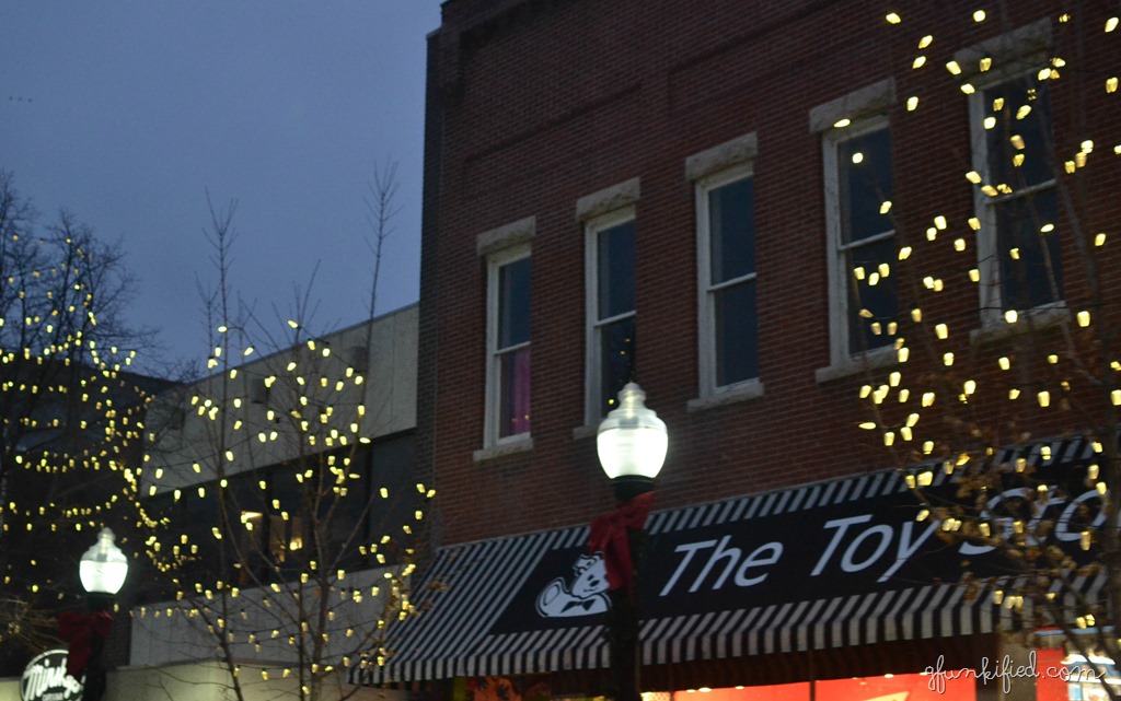 And these were after Christmas Eve service at our church. I love driving down this street after, because all of the trees are lit up. I took the first one while waiting at a red light, about the turn onto the street. T took the second one as we were driving.