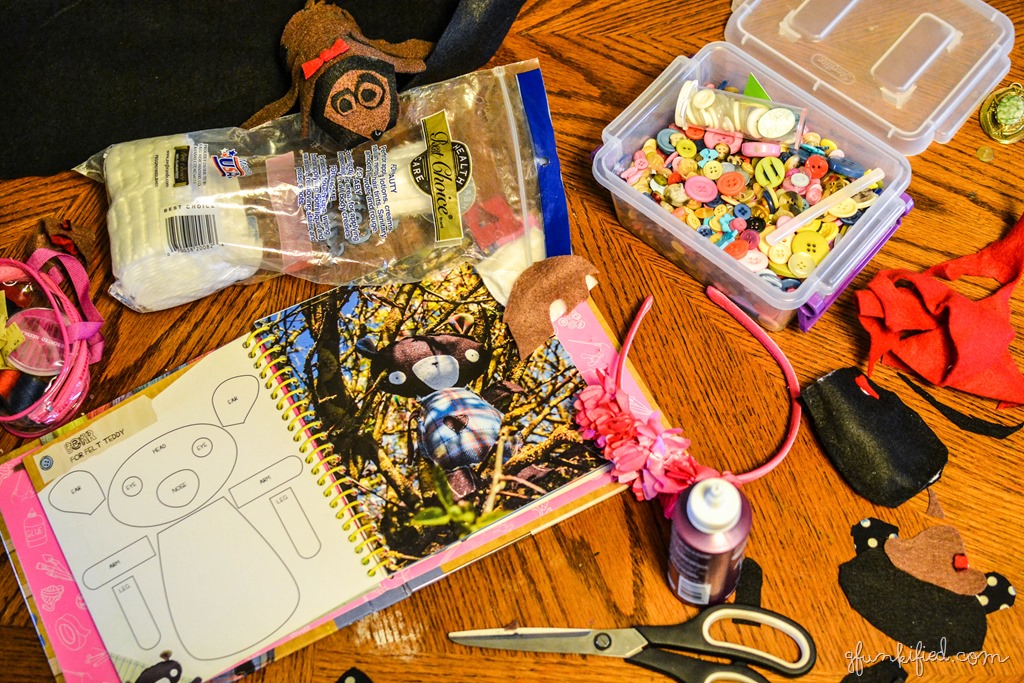 Ivy has gotten a lot of craft books from the library lately, and the last couple have been on how to make felt crafts. I love that she can do most of them herself, and she loves to be able to make a cute little project in an hour or so. Lucky for me, this weekend she made a stuffed teddy bear with polka dot ears.