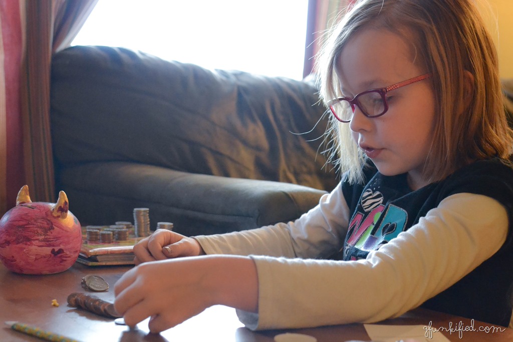 Ivy was really cute last night, emptying both of her piggy banks to count all of her money. She had decided a few days ago that she wants to save up all of her money to buy herself a computer.