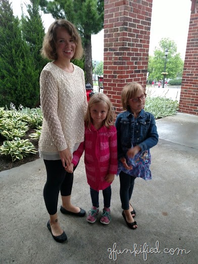 Despite a forecast that said the rain would clear by 8pm, or at the very least, the second act, we sat in a heavy-to-moderate drizzle for the entire production of Cinderella last night. The two girls, my mom and I went, but no one complained (even me…the complainer). We bought $1 ponchos and it was totally fine…even fun. (Sugared refreshments also helped)