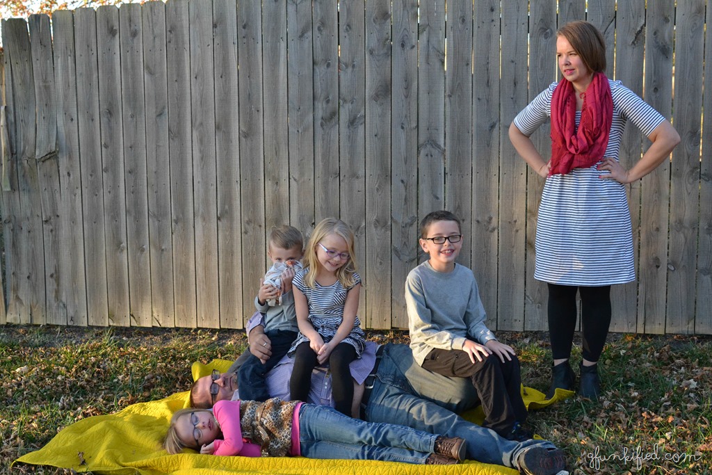 I love your family. I think you should use the one with Dad covered in kids at the centerpiece for the card. 🙂